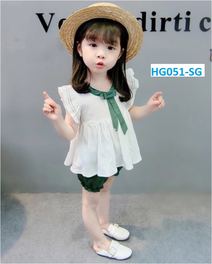 Bộ bé ái nhúng bèo thắt nơ xinh xắn - HG051 - xưởng thời trang quần áo trẻ em, sỉ lẻ thời trang trẻ em