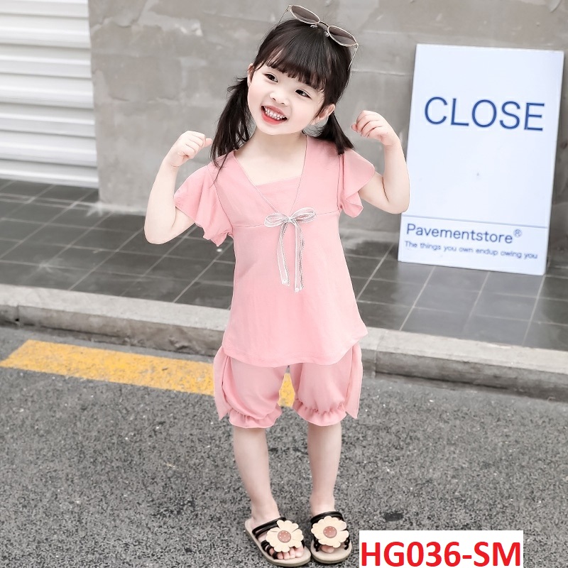 Bộ nơ bánh bèo nhún viền dễ thương - HG036 - xưởng thời trang quần áo trẻ em, sỉ lẻ thời trang trẻ em